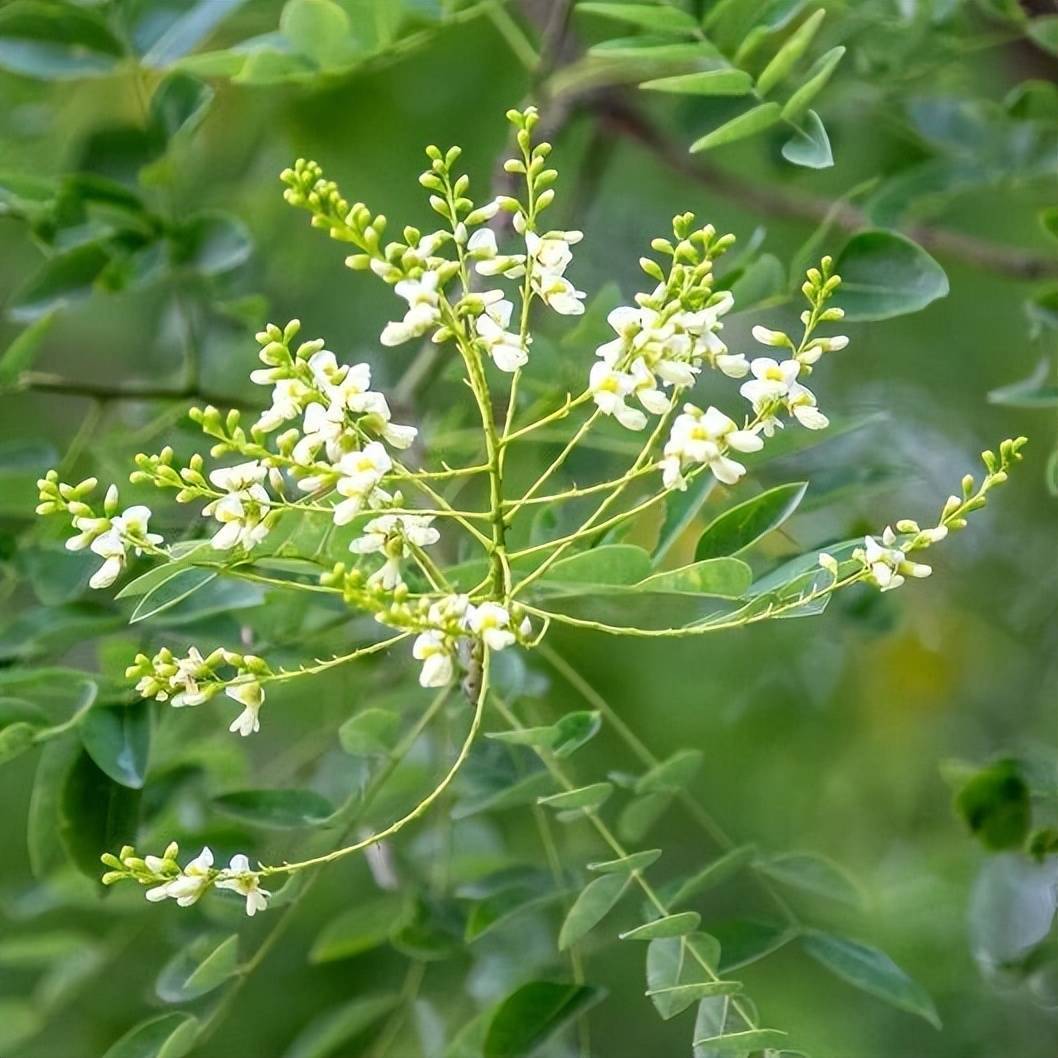 洋槐又叫刺槐,花呈白色,叶子一般呈椭圆形,叶柄基部有托叶刺。央视新闻图